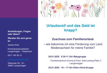 Die Diakonie Hannover-Land lädt herzlich ein zum online Abend, um über den Zuschuss zur Familienerholung zu informieren...